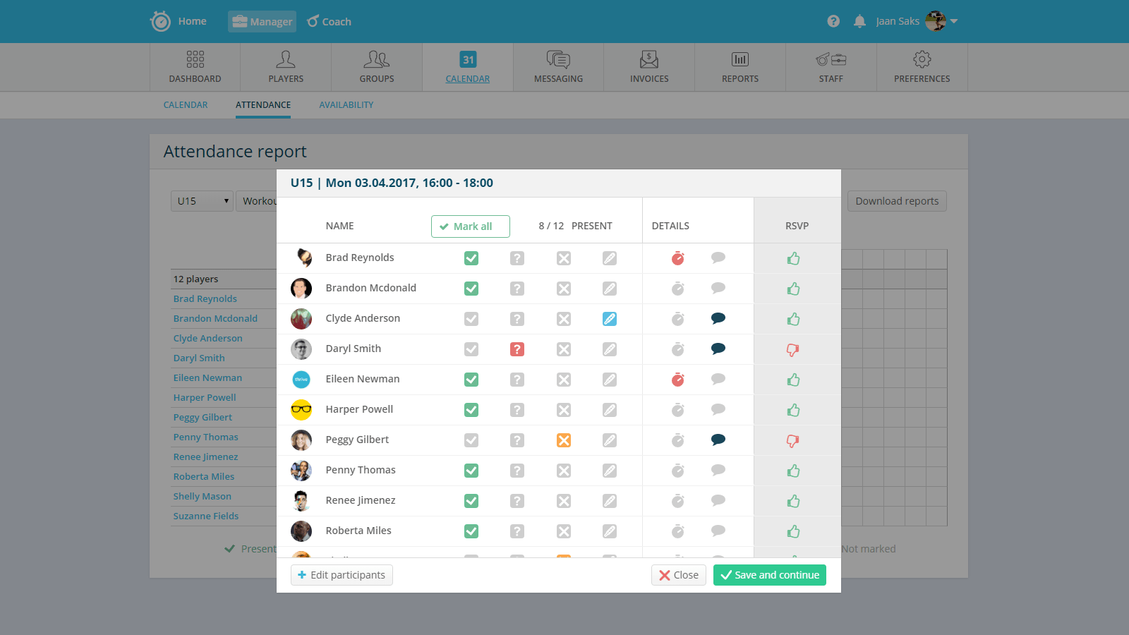 Everybody has their own reasons for marking attendance. For some, it’s to count how often their athletes show up. Others keep a track record of how much someone has played or who hasn’t played at all. Some coaches need to report attendance to the parents or club managers, others just like to keep score.