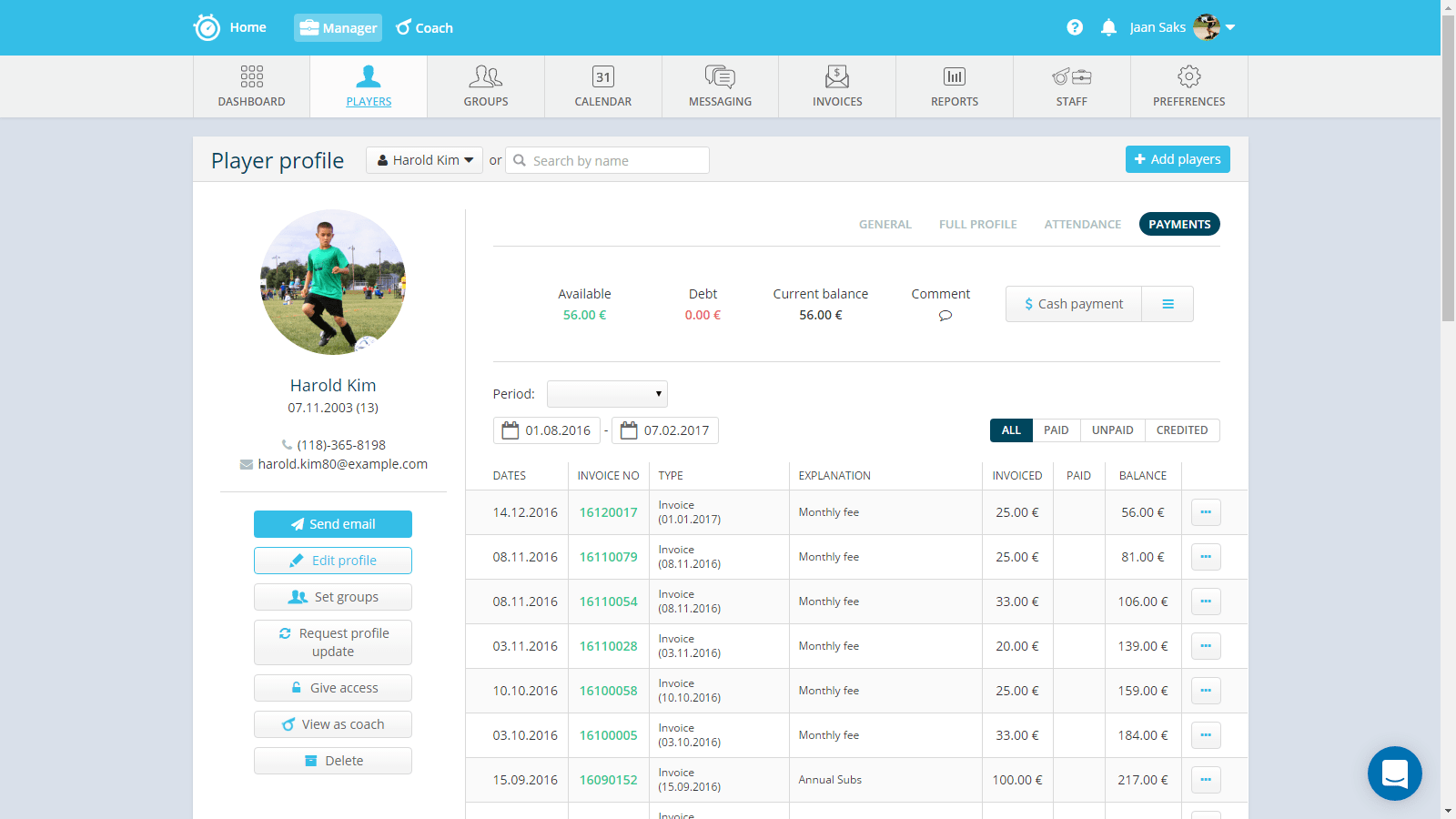Easily send invoices to the whole club and track payments afterwards. You can also send friendly reminders to debtors to pay their fees.