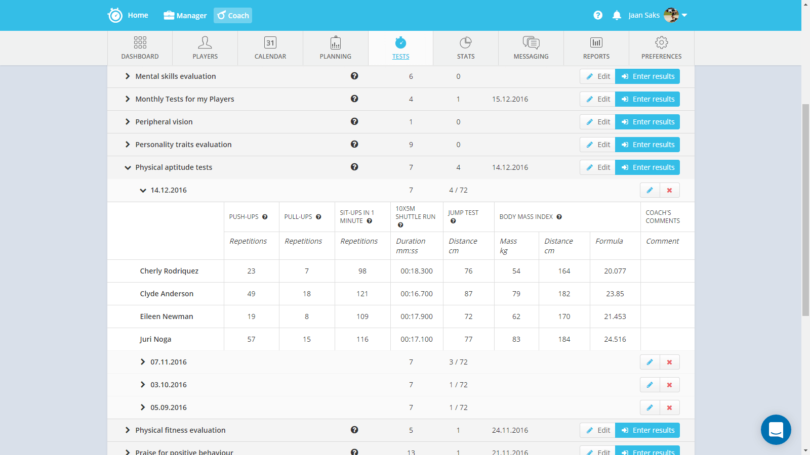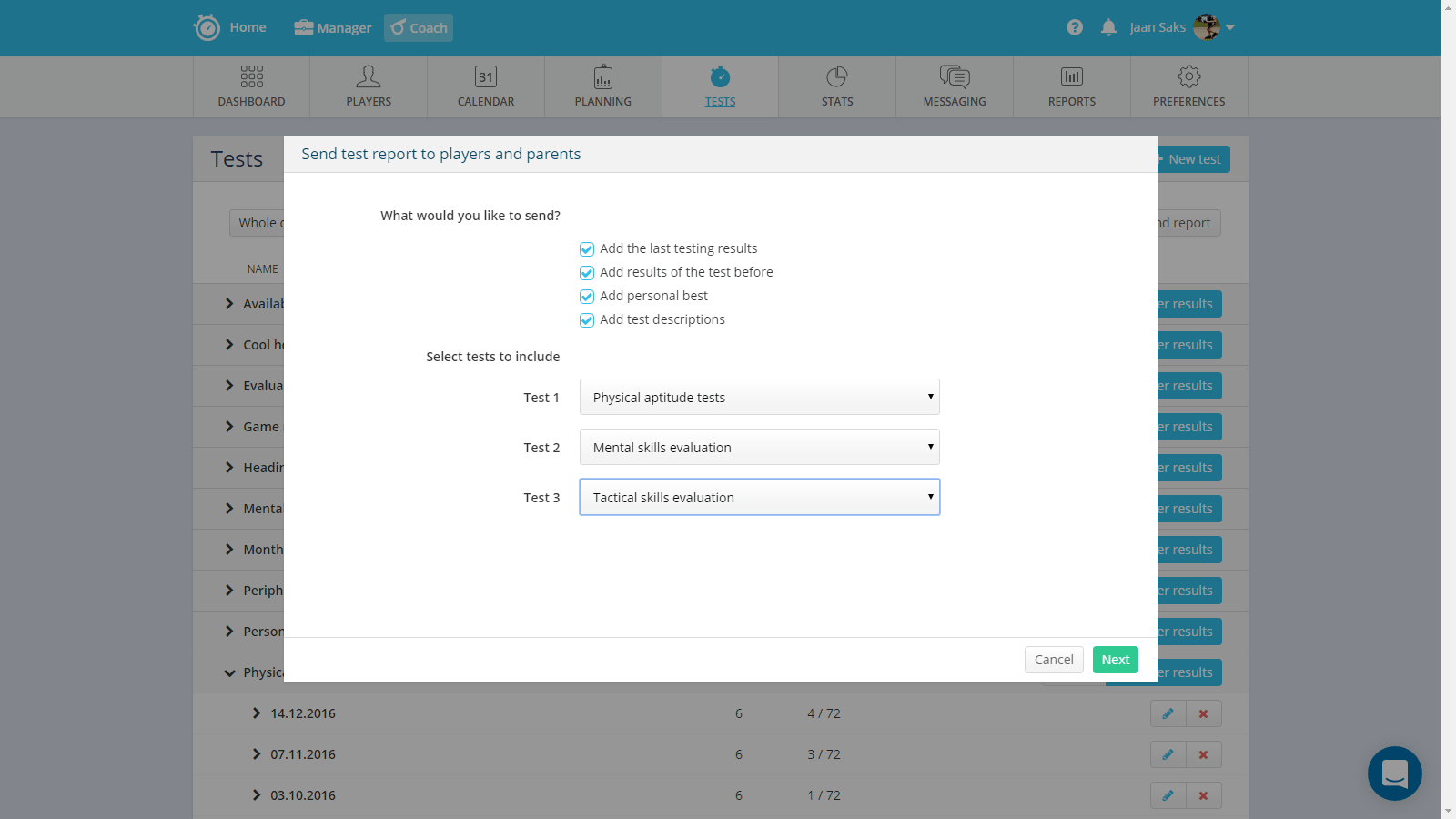 The player evaluation and testing features let you track anything that is important for your players' age, be it objective, subjective, physical, or non-physical. And sending progress reports to players or parents is just the cherry on the cake.